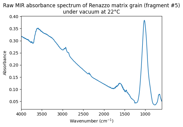 Raw MIR absorbance spectrum of Renazzo matrix grain (fragment #5) under vacuum at 22°C