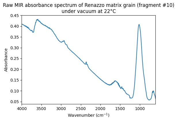 Raw MIR absorbance spectrum of Renazzo matrix grain (fragment #10) under vacuum at 22°C