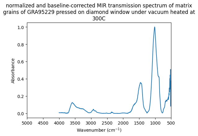 normalized and baseline-corrected MIR transmission spectrum of matrix grains of GRA95229 pressed on diamond window under vacuum heated at 300C