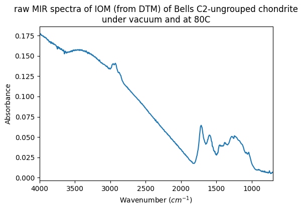 - Quirico, Eric; Flandinet, Laurene (2016): MIR spectra of IOM from CM and C2-ungrouped chondrites under vacuum and at T=80C. SSHADE/GhoSST (OSUG Data Center). Dataset/Spectral Data. https://doi.org/10.26302/SSHADE/EXPERIMENT_LB_20180718_001