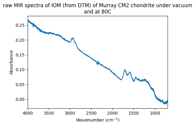 - Quirico, Eric; Flandinet, Laurene (2016): MIR spectra of IOM from CM and C2-ungrouped chondrites under vacuum and at T=80C. SSHADE/GhoSST (OSUG Data Center). Dataset/Spectral Data. https://doi.org/10.26302/SSHADE/EXPERIMENT_LB_20180718_001