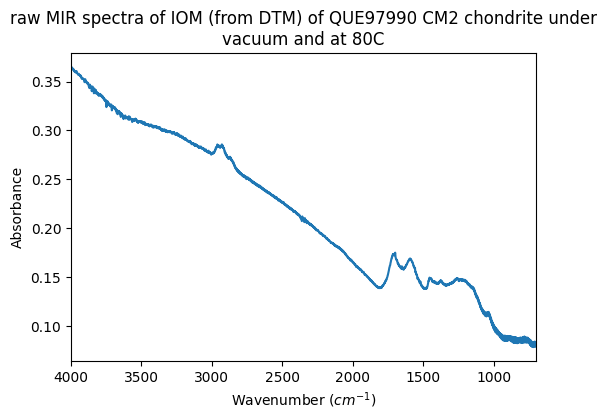 - Quirico, Eric; Flandinet, Laurene (2016): MIR spectra of IOM from CM and C2-ungrouped chondrites under vacuum and at T=80C. SSHADE/GhoSST (OSUG Data Center). Dataset/Spectral Data. https://doi.org/10.26302/SSHADE/EXPERIMENT_LB_20180718_001