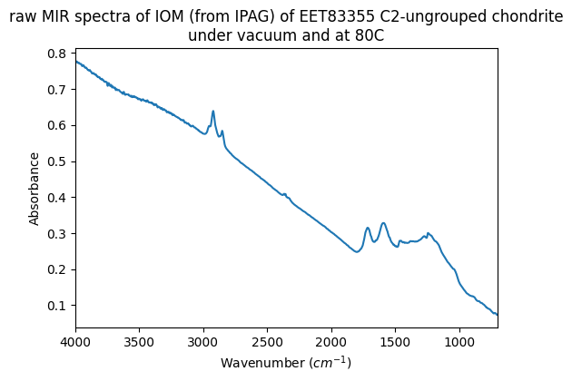 - Quirico, Eric; Flandinet, Laurene (2016): MIR spectra of IOM from CM and C2-ungrouped chondrites under vacuum and at T=80C. SSHADE/GhoSST (OSUG Data Center). Dataset/Spectral Data. https://doi.org/10.26302/SSHADE/EXPERIMENT_LB_20180718_001