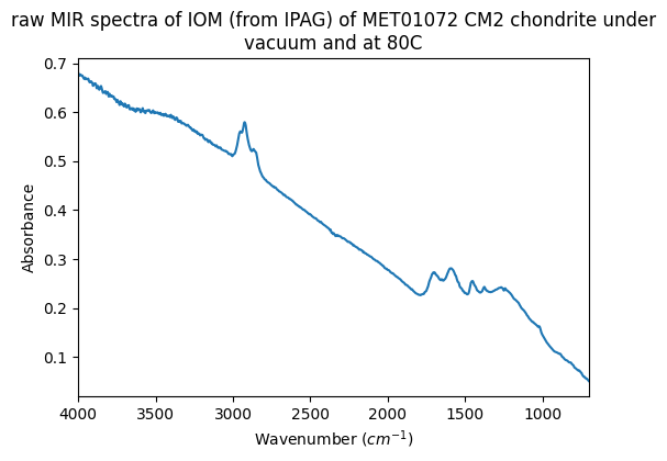 - Quirico, Eric; Flandinet, Laurene (2016): MIR spectra of IOM from CM and C2-ungrouped chondrites under vacuum and at T=80C. SSHADE/GhoSST (OSUG Data Center). Dataset/Spectral Data. https://doi.org/10.26302/SSHADE/EXPERIMENT_LB_20180718_001