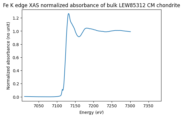 Fe K edge XAS absorbance of bulk CM carbonaceous chondrites