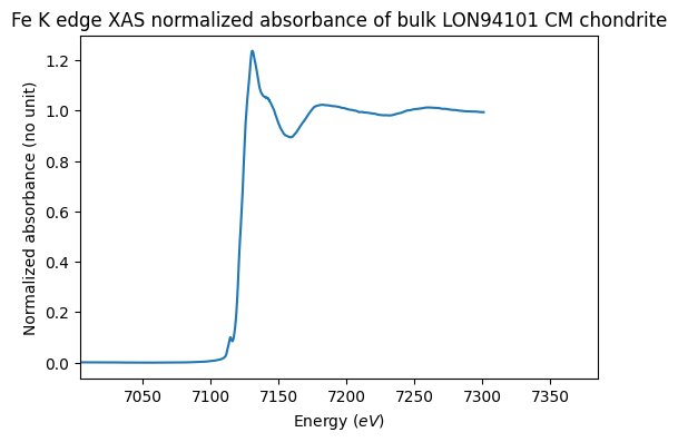 Fe K edge XAS normalized absorbance of bulk LON94101 CM chondrite