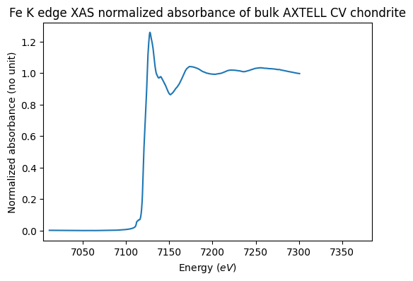 - Garenne, Alexandre; Bonal, Lydie; Beck, Pierre; Proux, Olivier (2013): Fe K edge XAS absorbance of bulk CV carbonaceous chondrites. SSHADE/GhoSST+FAME (OSUG Data Center). Dataset/Spectral Data. https://doi.org/10.26302/SSHADE/EXPERIMENT_LB_20191211_005