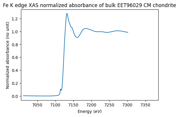 Fe K edge XAS normalized absorbance of bulk EET96029 CM chondrite