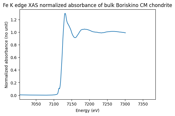 Fe K edge XAS normalized absorbance of bulk Boriskino CM chondrite