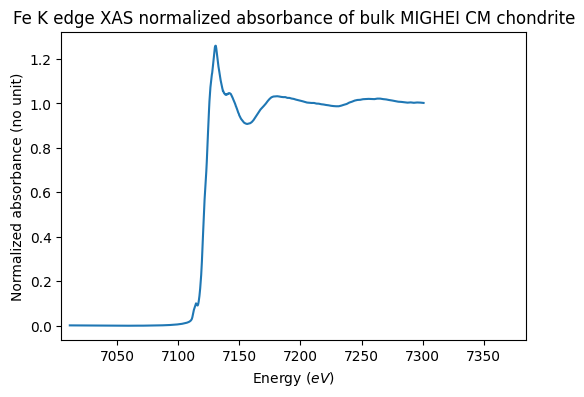 Fe K edge XAS absorbance of bulk CM carbonaceous chondrites
