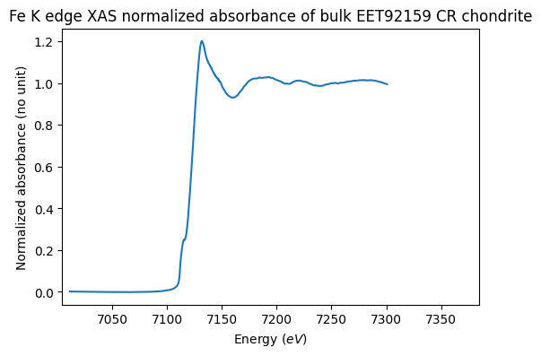 Fe K edge XAS normalized absorbance of bulk EET92159 CR chondrite