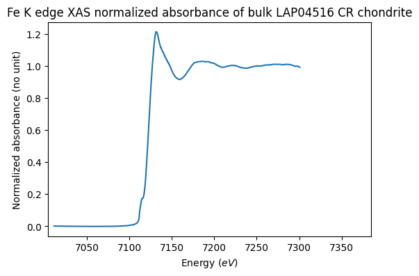 Fe K edge XAS normalized absorbance of bulk LAP04516 CR chondrite