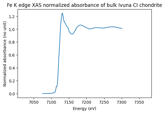 - Garenne, Alexandre; Bonal, Lydie; Beck, Pierre; Proux, Olivier (2013): Fe K edge XAS absorbance of bulk CI carbonaceous chondrites. SSHADE/GhoSST+FAME (OSUG Data Center). Dataset/Spectral Data. https://doi.org/10.26302/SSHADE/EXPERIMENT_LB_20191211_004