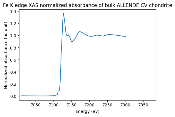- Garenne, Alexandre; Bonal, Lydie; Beck, Pierre; Proux, Olivier (2013): Fe K edge XAS absorbance of bulk CV carbonaceous chondrites. SSHADE/GhoSST+FAME (OSUG Data Center). Dataset/Spectral Data. https://doi.org/10.26302/SSHADE/EXPERIMENT_LB_20191211_005