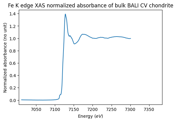 Fe K edge XAS normalized absorbance of bulk BALI CV chondrite