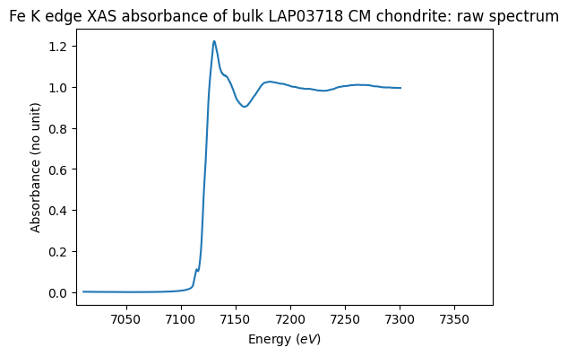 Fe K edge XAS absorbance of bulk LAP03718 CM chondrite: raw spectrum