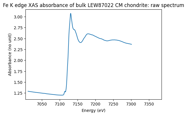 Fe K edge XAS absorbance of bulk CM carbonaceous chondrites
