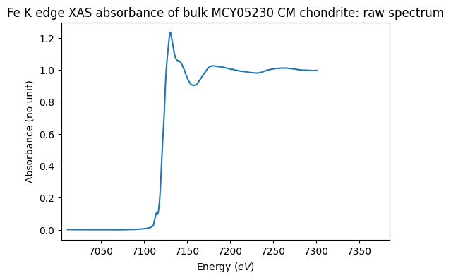 Fe K edge XAS absorbance of bulk MCY05230 CM chondrite: raw spectrum