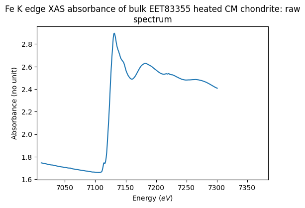 Fe K edge XAS absorbance of bulk EET83355 heated CM chondrite: raw spectrum