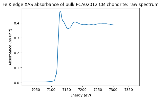 Fe K edge XAS absorbance of bulk PCA02012 CM chondrite: raw spectrum
