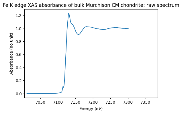 Fe K edge XAS absorbance of bulk Murchison CM chondrite: raw spectrum