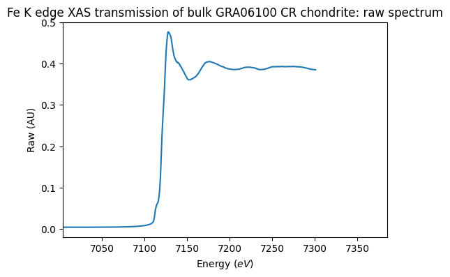 Fe K edge XAS transmission of bulk GRA06100 CR chondrite: raw spectrum