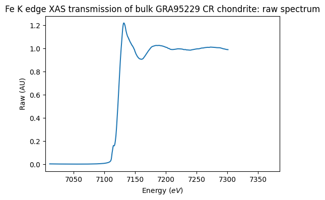 Fe K edge XAS transmission of bulk GRA95229 CR chondrite: raw spectrum