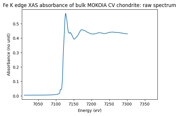Fe K edge XAS absorbance of bulk MOKOIA CV chondrite: raw spectrum