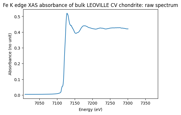 Fe K edge XAS absorbance of bulk LEOVILLE CV chondrite: raw spectrum