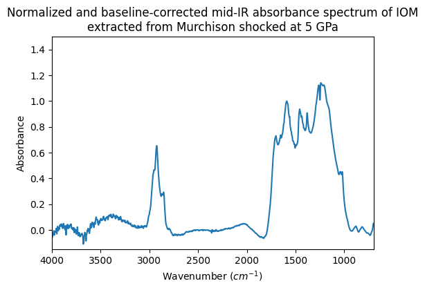 - Quirico, Eric (2010): Mid-IR absorbance spectra, normalized and baseline-corrected, of matrix and IOM fragments extracted from unshocked and shocked Murchison (CM2 chondrite) acquired under vacuum and at T = 80°C. SSHADE/GhoSST (OSUG Data Center). Dataset/Spectral Data. https://doi.org/10.26302/SSHADE/EXPERIMENT_LB_20240821_001