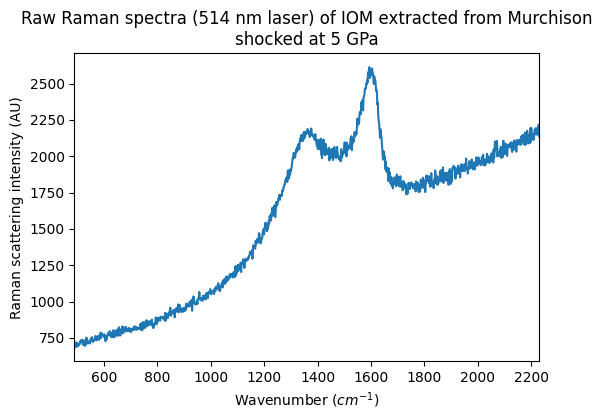 - Quirico, Eric; Bonal, Lydie (2010): Raman spectra (514 nm, raw and baseline-corrected) of matrix fragments and IOM extracted from unshocked and shocked Murchison (CM2 chondrite) and from shocked EET90628 (L3 chondrite). SSHADE/GhoSST (OSUG Data Center). Dataset/Spectral Data. https://doi.org/10.26302/SSHADE/EXPERIMENT_LB_20240904_001