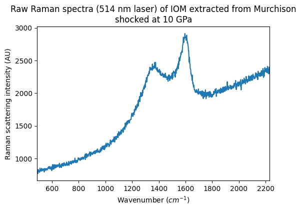Raw Raman spectra (514 nm laser) of IOM extracted from Murchison shocked at 10 GPa