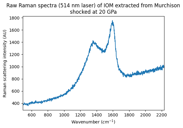 Raw Raman spectra (514 nm laser) of IOM extracted from Murchison shocked at 20 GPa