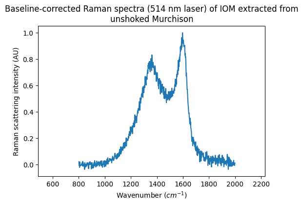 Baseline-corrected Raman spectra (514 nm laser) of IOM extracted from unshoked Murchison