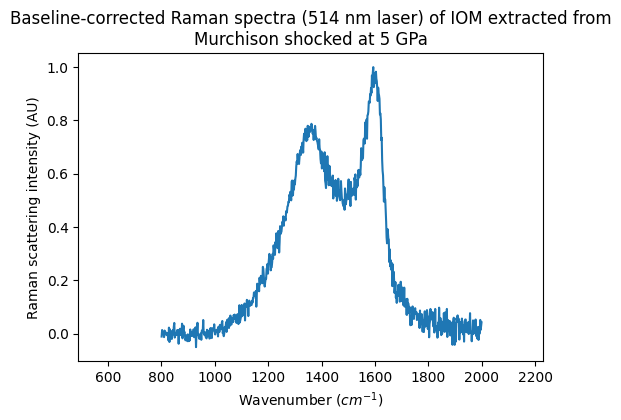 - Quirico, Eric; Bonal, Lydie (2010): Raman spectra (514 nm, raw and baseline-corrected) of matrix fragments and IOM extracted from unshocked and shocked Murchison (CM2 chondrite) and from shocked EET90628 (L3 chondrite). SSHADE/GhoSST (OSUG Data Center). Dataset/Spectral Data. https://doi.org/10.26302/SSHADE/EXPERIMENT_LB_20240904_001