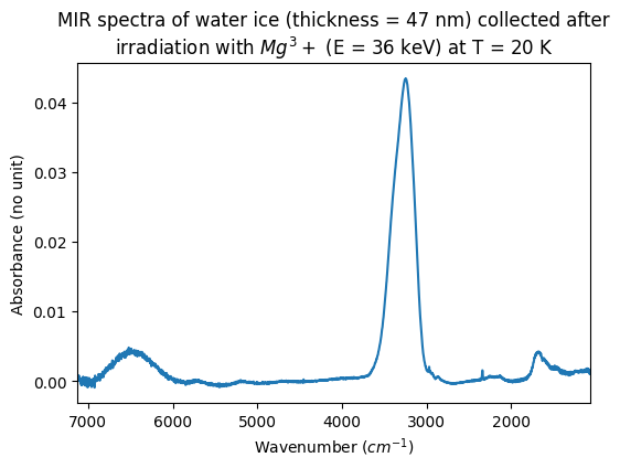 - Moingeon, Audrey; Quirico, Eric; Poch, Olivier; Faure, Mathilde; Boduch, Philippe; Domaracka, Alicja; Rothard, Hermann (2024): MIR spectra collected before and after irradiation experiments (with different ions at varying energy) of crystalline water ice at temperature from 20 K to 120 K. SSHADE/GhoSST (OSUG Data Center). Dataset/Spectral Data. https://doi.org/10.26302/SSHADE/EXPERIMENT_LB_20250630_001
