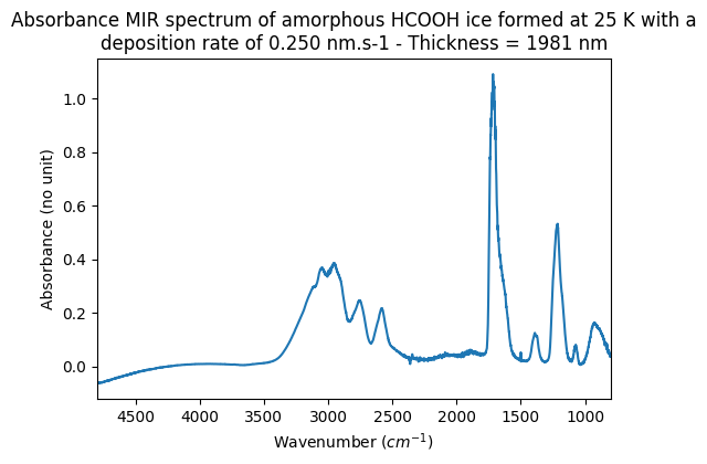 - Fray, Nicolas; Bouilloud, Michaëlle (2012): MIR absorbance spectra of amorphous HCOOH ice at 25K for different deposition rates and different thicknesses. SSHADE/SCOOP (OSUG Data Center). Dataset/Spectral Data. https://doi.org/10.26302/SSHADE/EXPERIMENT_NF_20250624_001