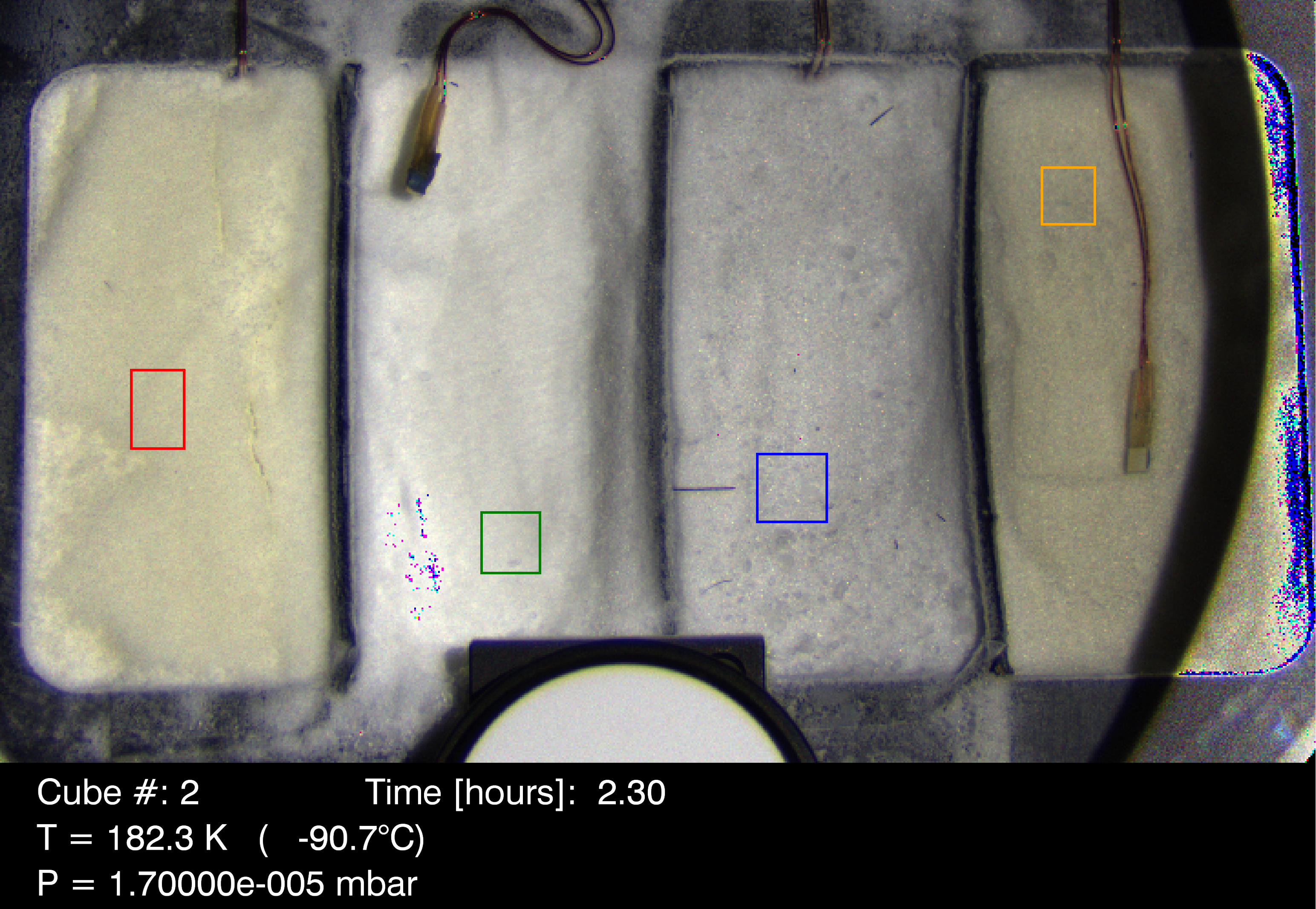 - After 2.3h of sublimation, a desiccated layer made of pure smectite, about 0.62±0.05 mm thick, covers the ice particles.