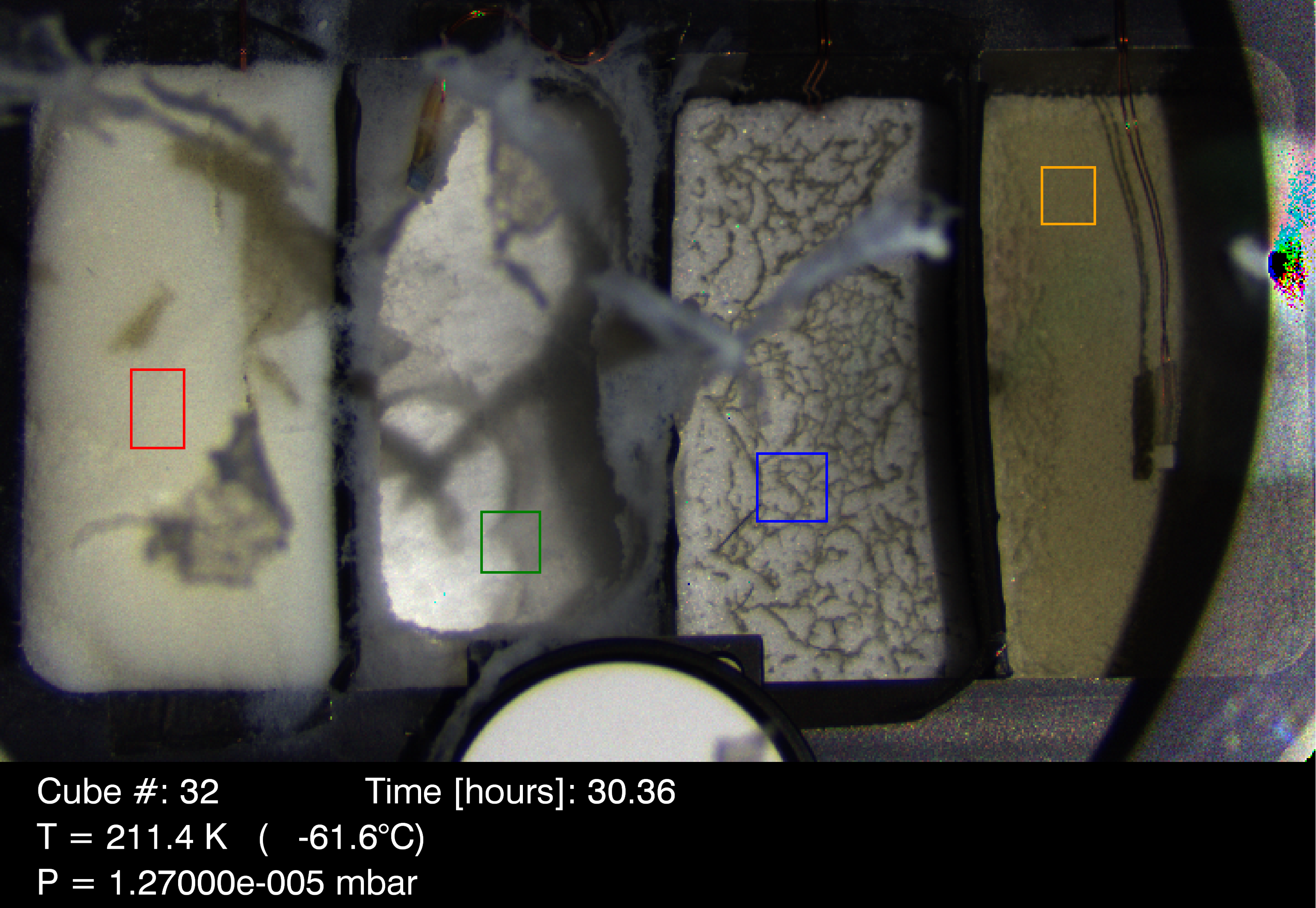After 30.36h of sublimation, a desiccated layer made of pure smectite, about 8.20±0.61 mm thick, covers the ice particles.