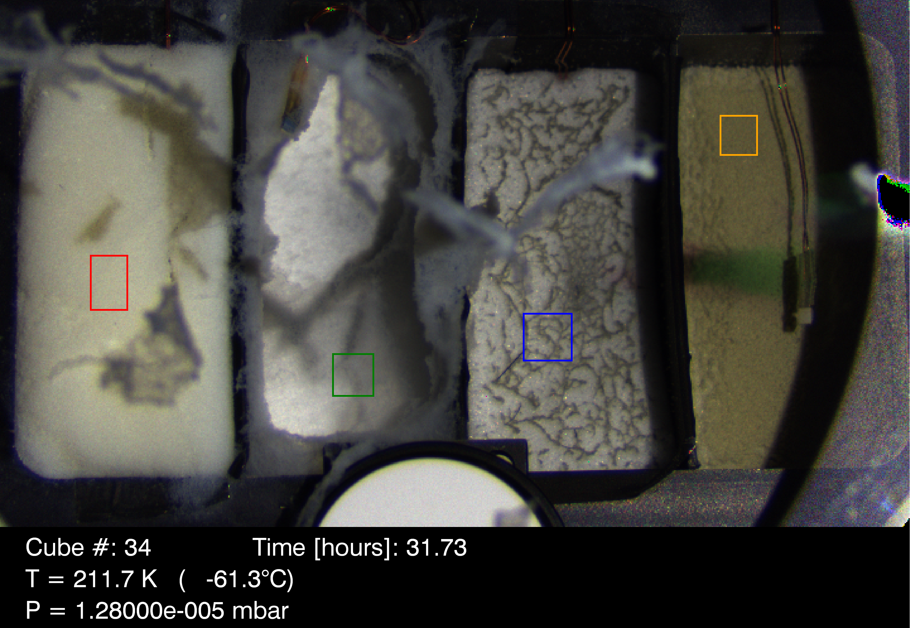 - After 31.73h of sublimation, a desiccated layer made of pure smectite, about 8.57±0.63 mm thick, covers the ice particles.