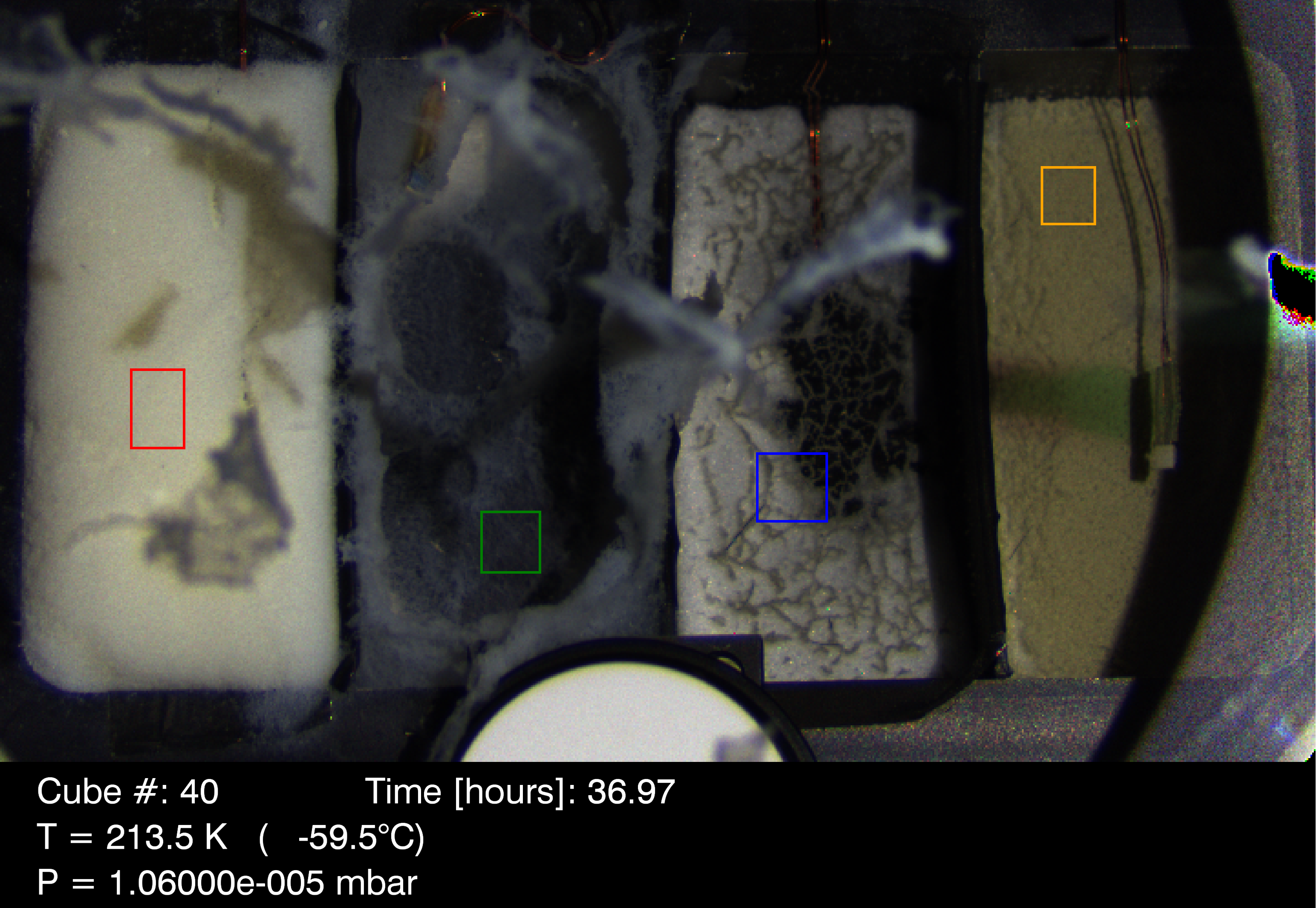 - After 36.97h of sublimation, a desiccated layer made of pure smectite, about 9.98±0.74 mm thick, covers the ice particles.