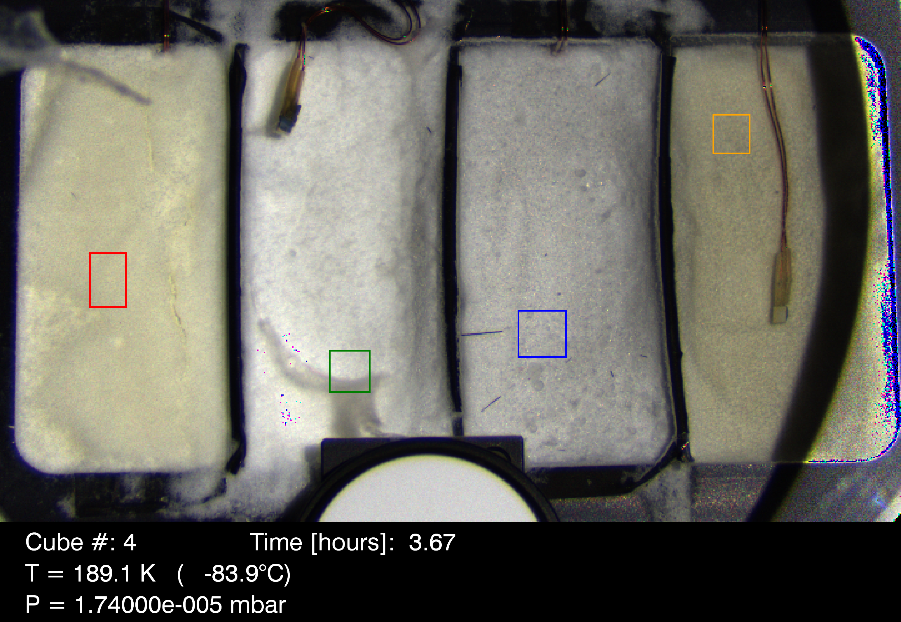 - After 3.67h of sublimation, a desiccated layer made of pure smectite, about 0.99±0.07 mm thick, covers the ice particles.