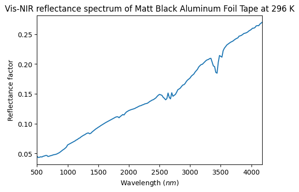- 500.0 - 660.0 $nm$ ; 680.0 - 1380.0 $nm$ ; 1400.0 - 2980.0 $nm$ ; 3000.0 - 4180.0 $nm$