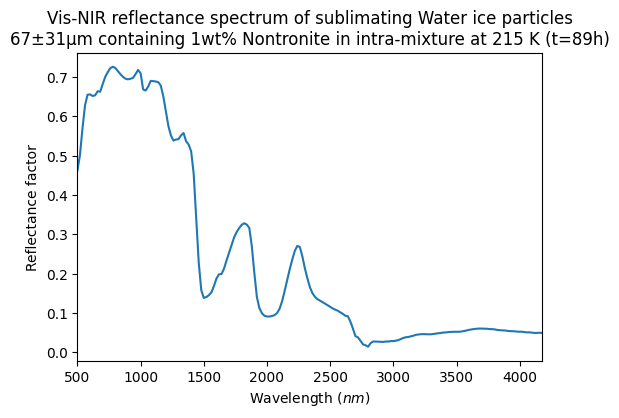 - Schroeder, Stefan; Poch, Olivier; Ferrari, Marco; DeAngelis, Simone (2019): Vis-NIR reflectance spectra of Nontronite NAu-1, pure, mixed with Water ice, during and after ice sublimation. SSHADE/CSS (OSUG Data Center). Dataset/Spectral Data. https://doi.org/10.26302/SSHADE/EXPERIMENT_OP_20200701_001