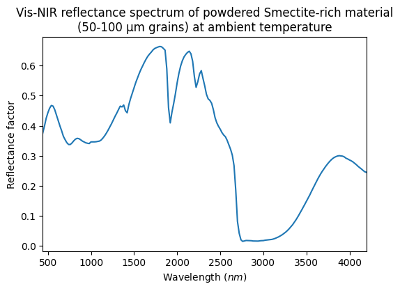 - Sultana, Robin (2018): Vis-NIR reflectance spectra of powdered olivine, pyroxene, smectite and silica at 4 different grain sizes (from sub-µm to 200 µm) and with sub-µm grains in compact or porous surfaces. SSHADE/GhoSST (OSUG Data Center). Dataset/Spectral Data. https://doi.org/10.26302/SSHADE/EXPERIMENT_OP_20200908_001