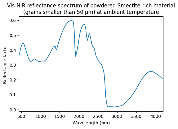 - Sultana, Robin (2018): Vis-NIR reflectance spectra of powdered olivine, pyroxene, smectite and silica at 4 different grain sizes (from sub-µm to 200 µm) and with sub-µm grains in compact or porous surfaces. SSHADE/GhoSST (OSUG Data Center). Dataset/Spectral Data. https://doi.org/10.26302/SSHADE/EXPERIMENT_OP_20200908_001