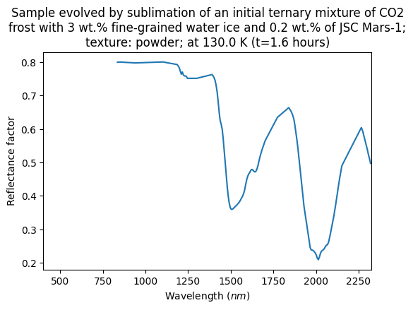 - Yoldi, Zuriñe (2018): VIS-NIR reflectance spectra collected during a sublimation experiment with ternary mixtures of CO2 frost, spherical water ice particles and JSC Mars-1 regolith simulant. SSHADE/BYPASS (OSUG Data Center). Dataset/Spectral Data. https://doi.org/10.26302/SSHADE/EXPERIMENT_ZY_20180207_000