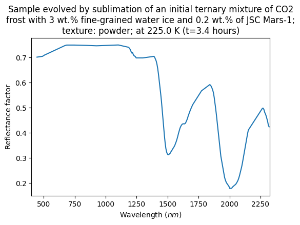 Yoldi, Zuriñe (2018): VIS-NIR reflectance spectra collected during a sublimation experiment with ternary mixtures of CO2 frost, spherical water ice particles and JSC Mars-1 regolith simulant. SSHADE/BYPASS (OSUG Data Center). Dataset/Spectral Data. https://doi.org/10.26302/SSHADE/EXPERIMENT_ZY_20180207_000