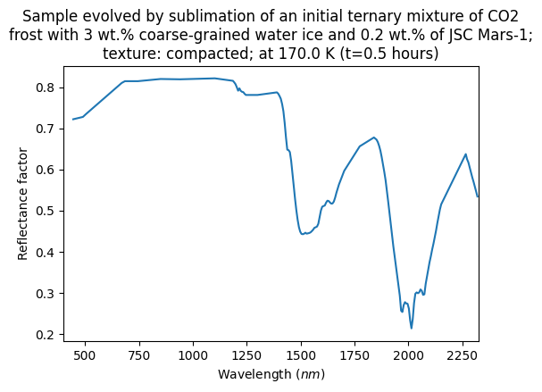 - Yoldi, Zuriñe (2018): VIS-NIR reflectance spectra collected during a sublimation experiment with ternary mixtures of CO2 frost, spherical water ice particles and JSC Mars-1 regolith simulant. SSHADE/BYPASS (OSUG Data Center). Dataset/Spectral Data. https://doi.org/10.26302/SSHADE/EXPERIMENT_ZY_20180207_000