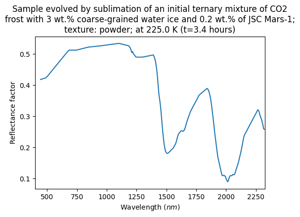 Yoldi, Zuriñe (2018): VIS-NIR reflectance spectra collected during a sublimation experiment with ternary mixtures of CO2 frost, spherical water ice particles and JSC Mars-1 regolith simulant. SSHADE/BYPASS (OSUG Data Center). Dataset/Spectral Data. https://doi.org/10.26302/SSHADE/EXPERIMENT_ZY_20180207_000